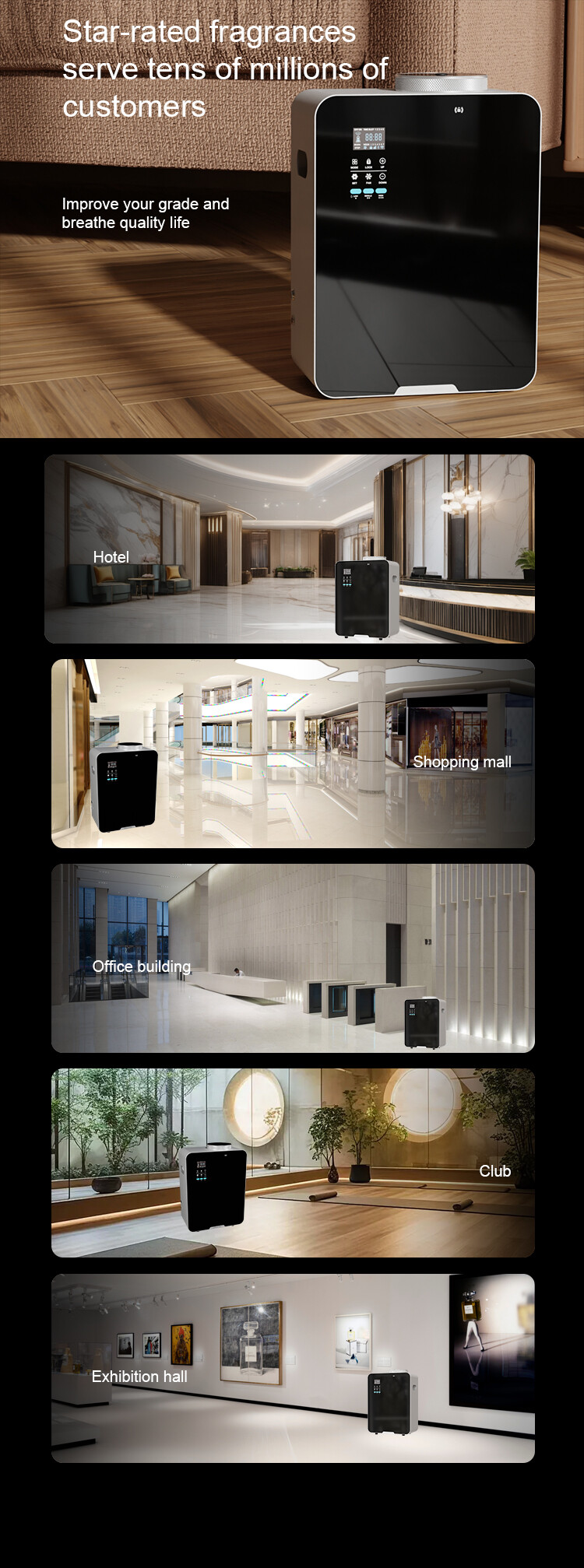 suitable fragrance scheme for our customers and improve the space grade for washroom,house,spa,hotel,office,shopping
